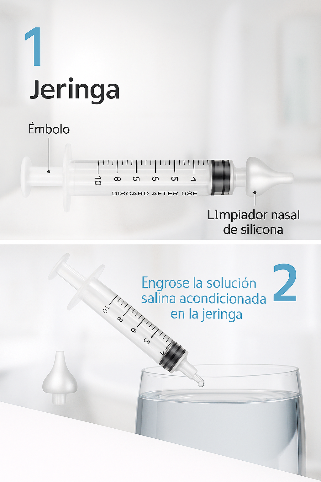 – Capacidad de 10 ml, ideal para una succión controlada y precisa.