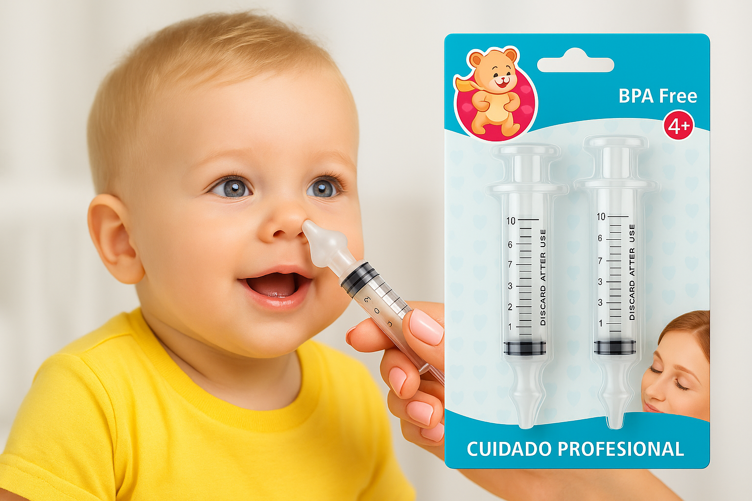 Mantén las vías respiratorias de tu bebé siempre limpias y despejadas con este práctico aspirador nasal tipo jeringa, diseñado especialmente para ofrecer una limpieza suave, segura y eficaz.