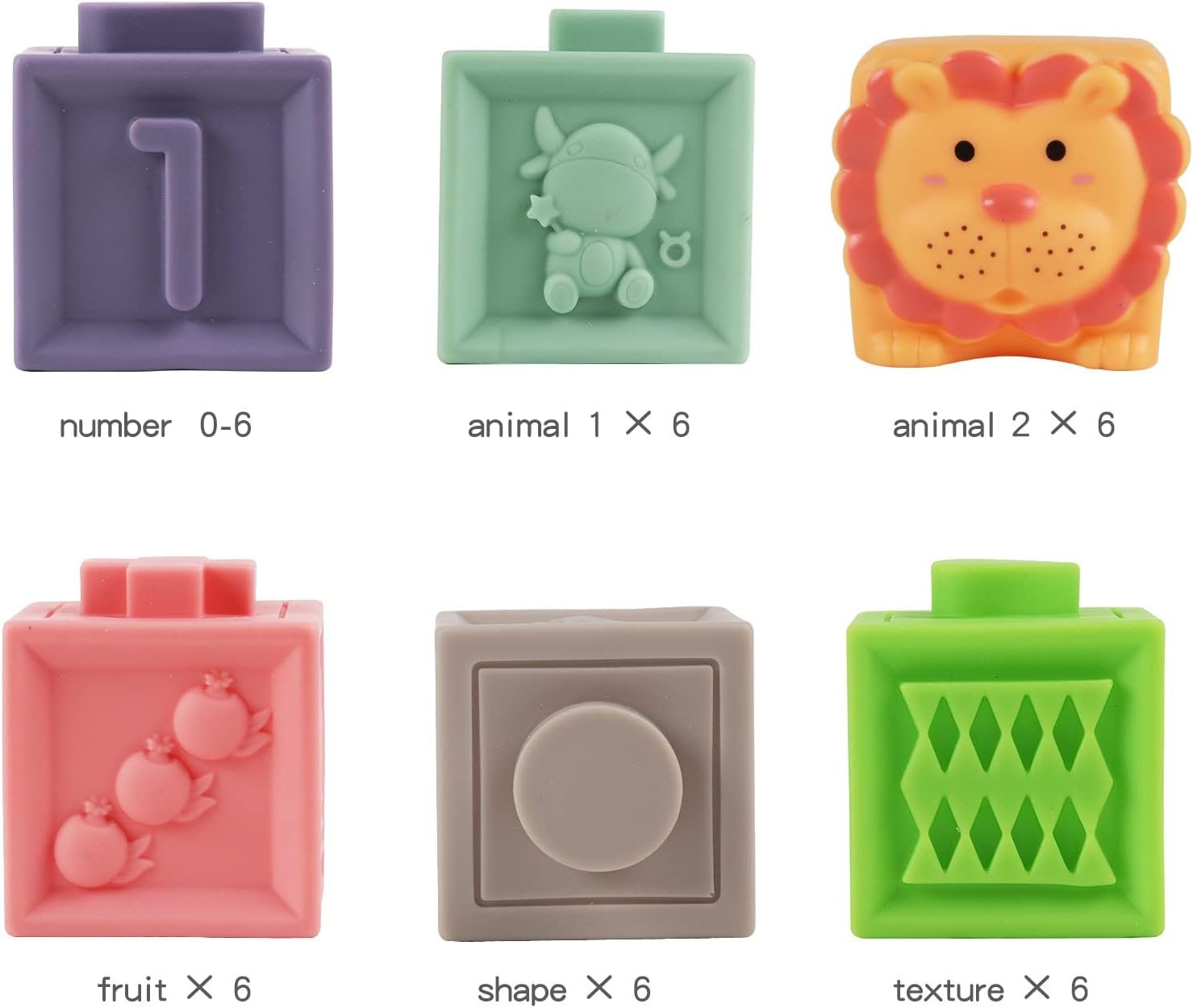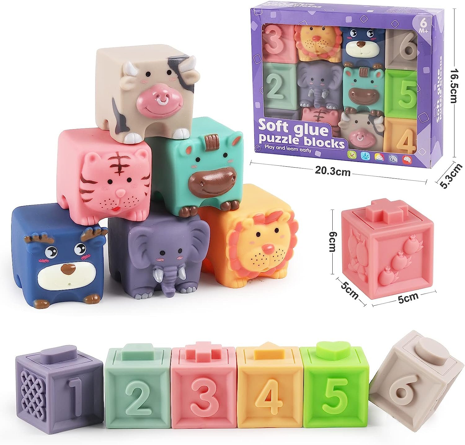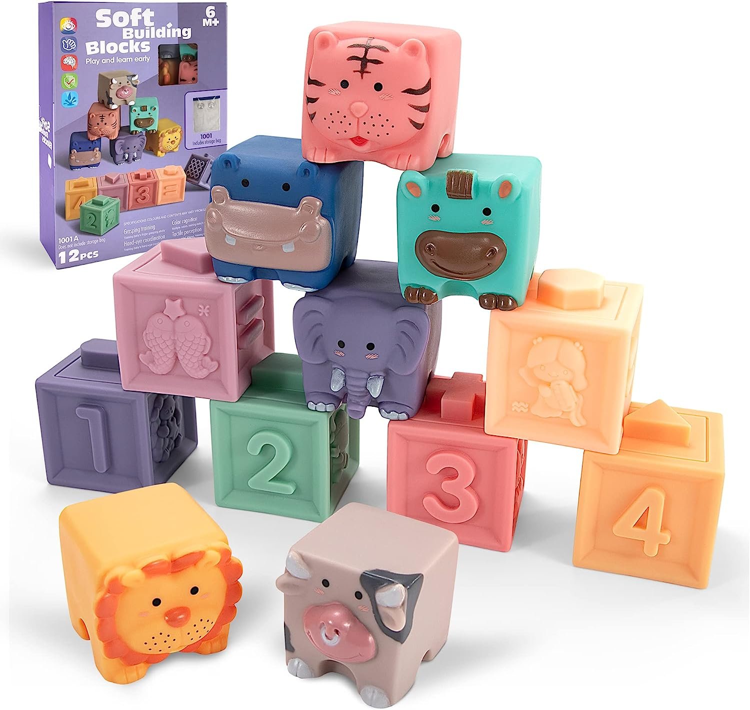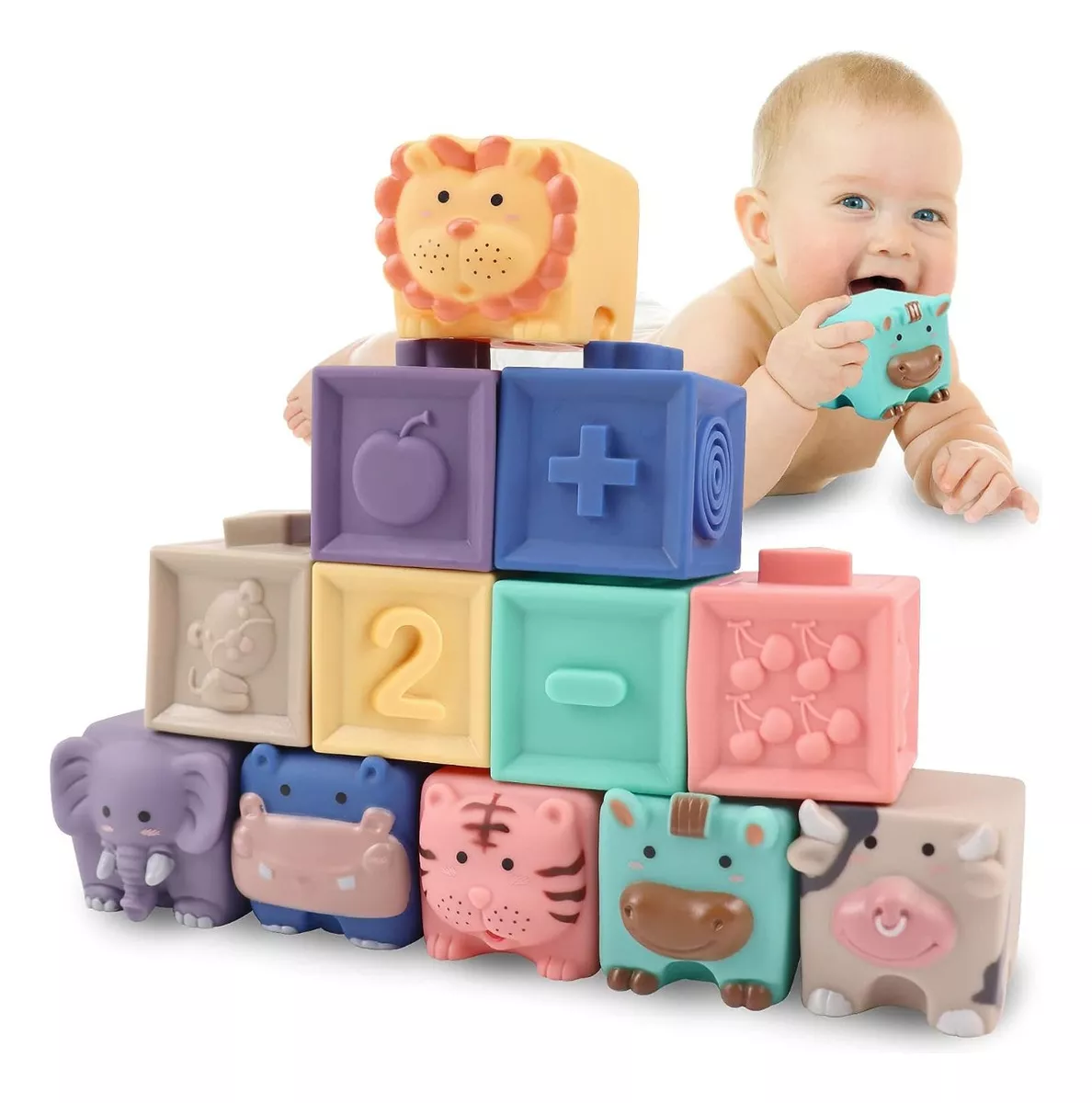 Estos bloques de construcción están diseñados especialmente para estimular el desarrollo sensorial, cognitivo y motriz de los bebés desde los primeros meses de vida. Fabricados en silicona de grado alimenticio, son suaves, seguros para morder y fáciles de manipular con pequeñas manos. Cada bloque cuenta con diferentes texturas, formas y relieves de animales, números y patrones geométricos, promoviendo la exploración táctil y visual.