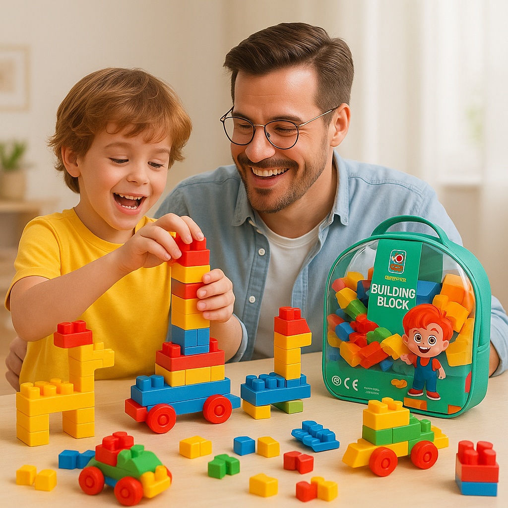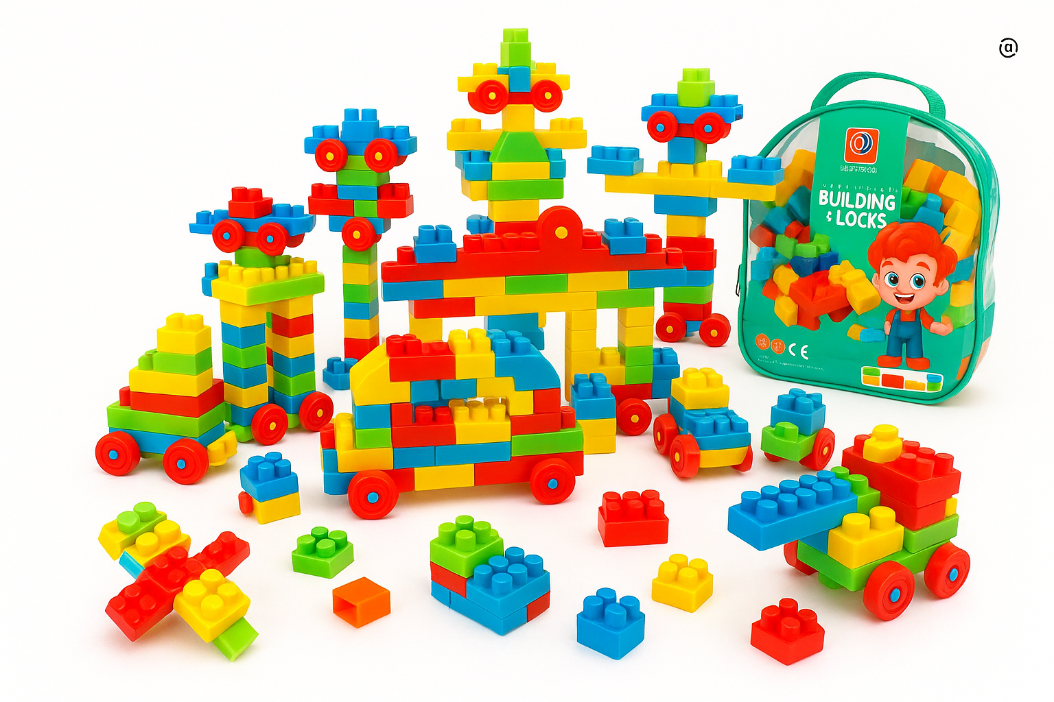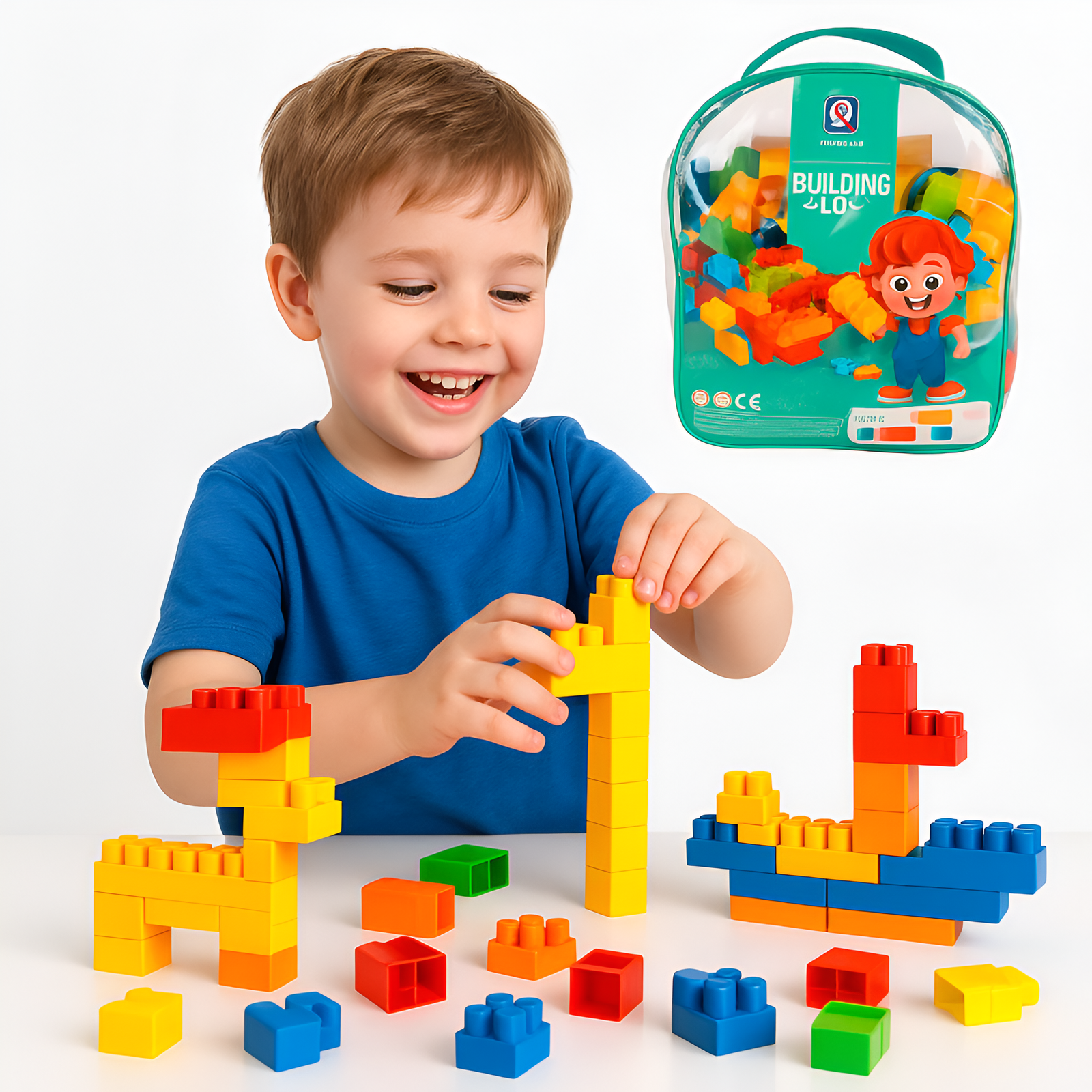 Set de bloques de construcción y rompecabezas ideal para estimular la creatividad, el desarrollo cognitivo y la motricidad de los niños. Viene en un práctico bolso que facilita su transporte y organización.