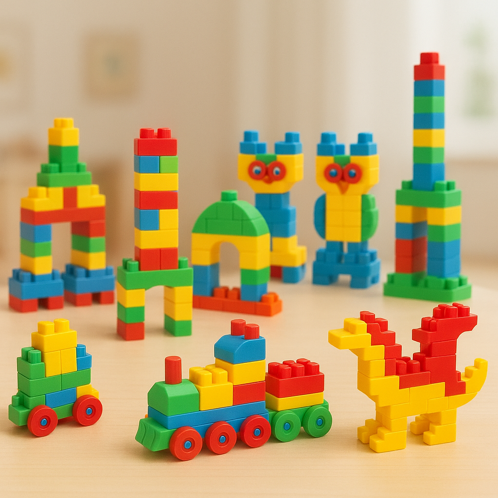 – Diversidad de formas y colores que permiten crear estructuras, caminos, figuras y combinar libremente.