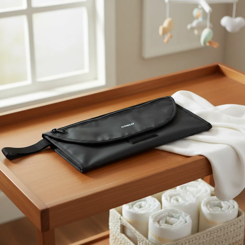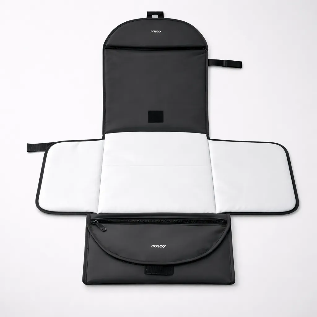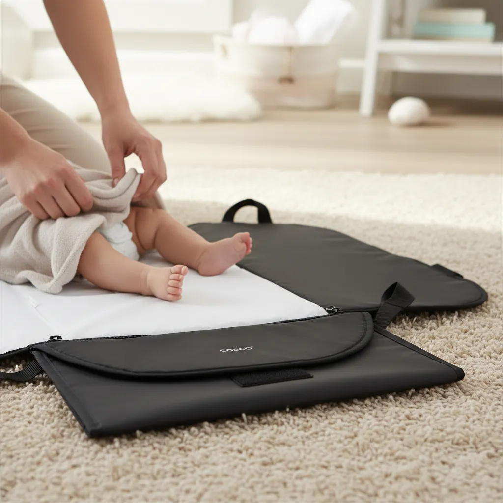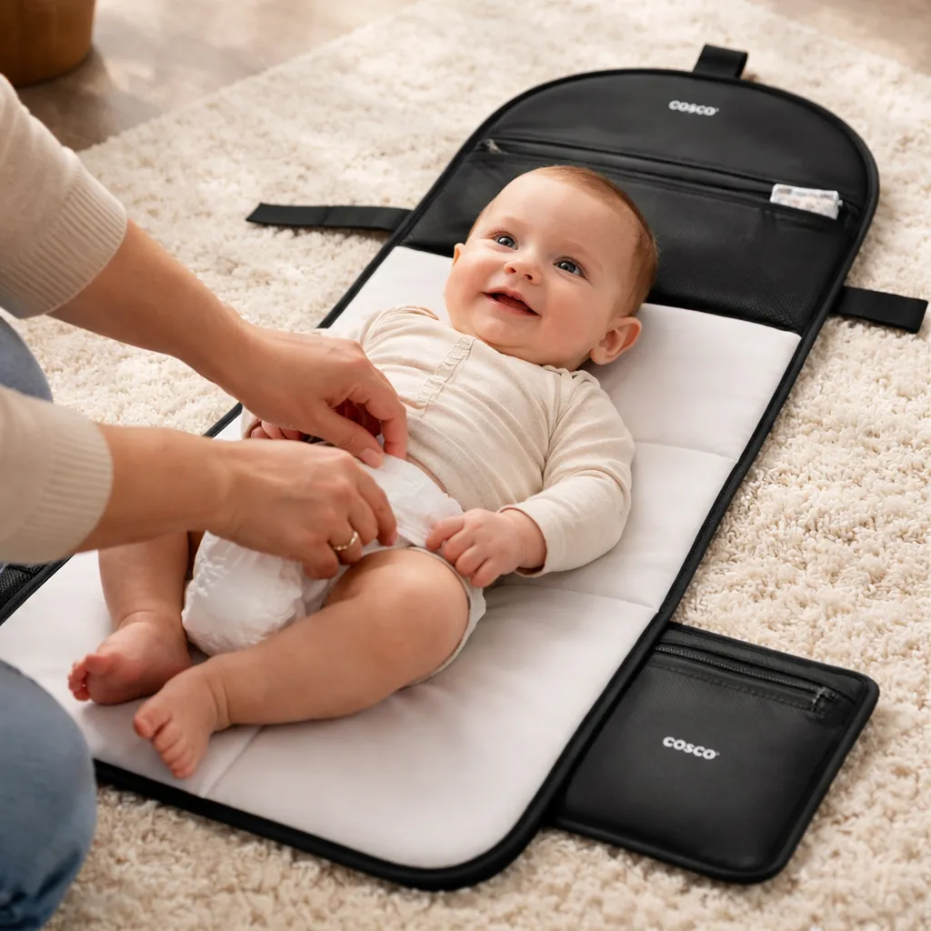 Su diseño plegable tipo cartera facilita guardarlo en cualquier bolso o cochecito, ocupando muy poco espacio. Además, incluye compartimentos para organizar pañales, toallitas húmedas, cremas u otros accesorios esenciales, manteniendo todo siempre a mano.