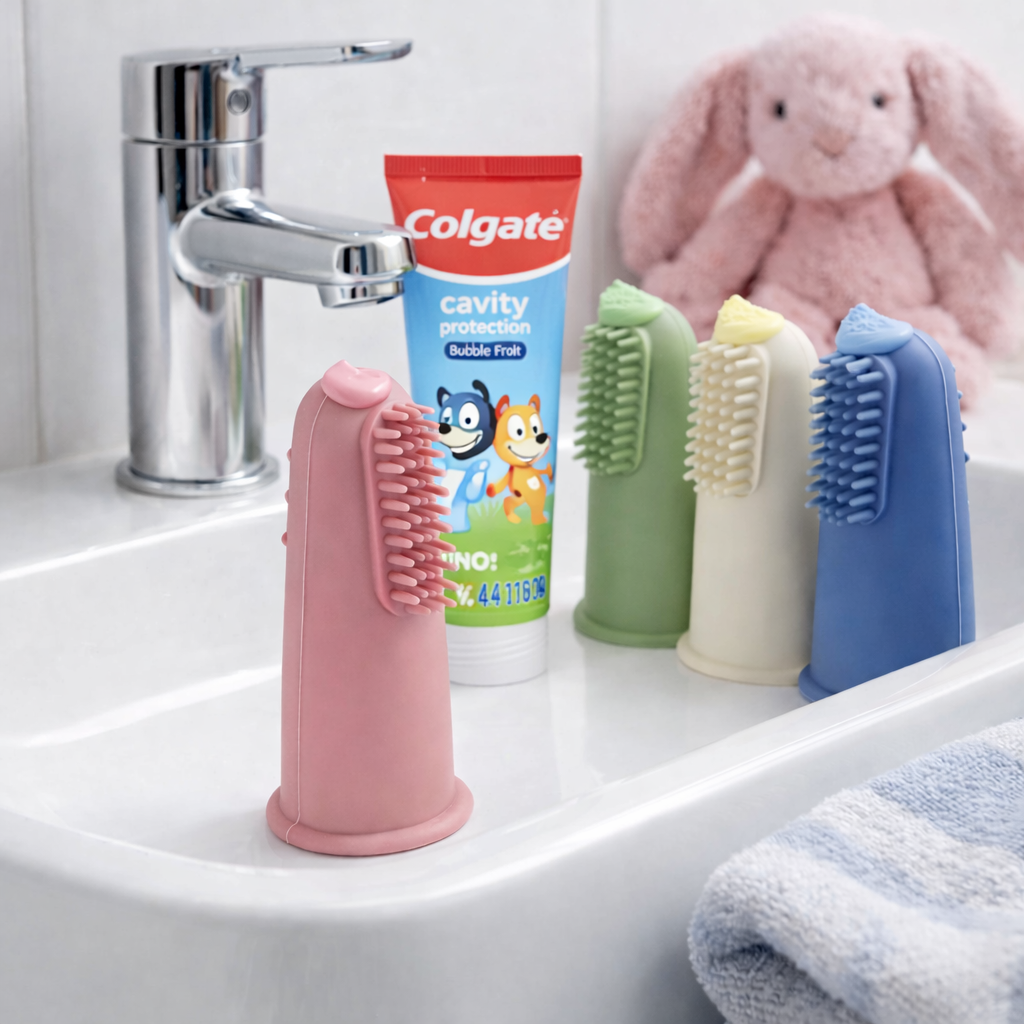 Su diseño tipo dedal permite que el adulto lo coloque directamente en el dedo, logrando un mejor control durante la limpieza y facilitando el contacto con la boca del bebé de forma cómoda y segura.