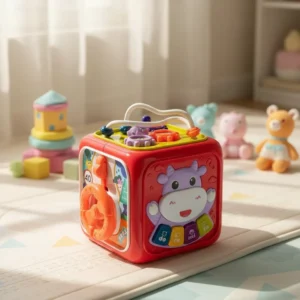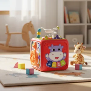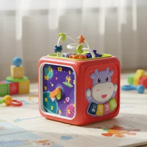 Gracias a sus diferentes paneles de actividades, permite explorar formas, colores, texturas y movimientos, favoreciendo la coordinación y el desarrollo sensorial desde los primeros meses.