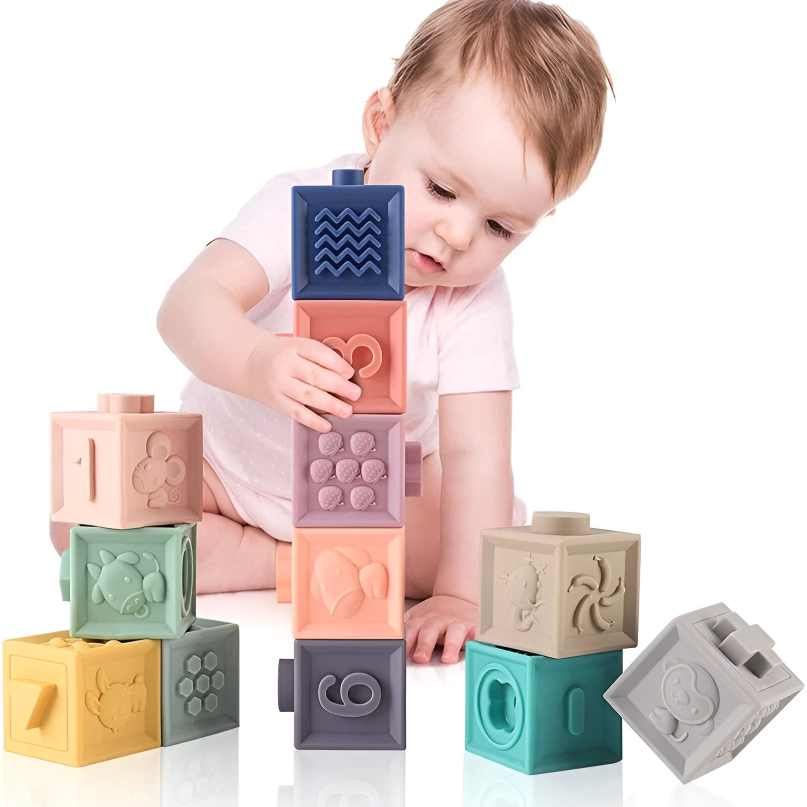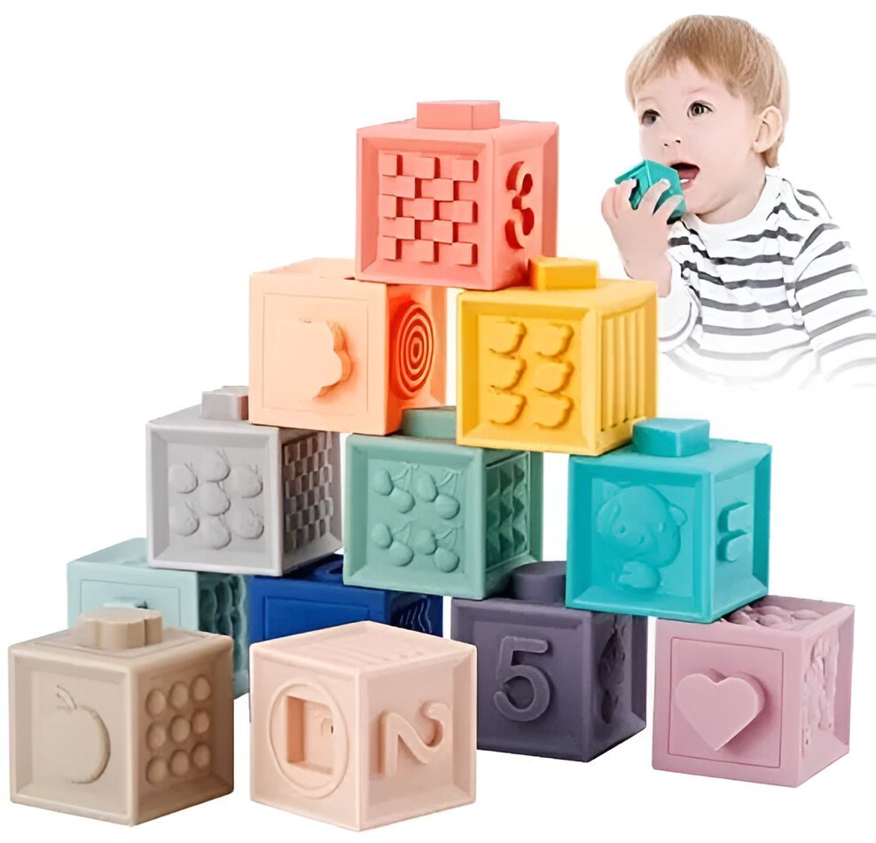 Estos bloques de construcción están diseñados especialmente para estimular el desarrollo sensorial, cognitivo y motriz de los bebés desde los primeros meses de vida. Fabricados en silicona de grado alimenticio, son suaves, seguros para morder y fáciles de manipular con pequeñas manos. Cada bloque cuenta con diferentes texturas, formas y relieves de animales, números y patrones geométricos, promoviendo la exploración táctil y visual.