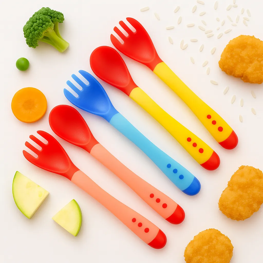 Diseñado para acompañar las primeras etapas de alimentación complementaria. Este set ayuda al bebé a comenzar a comer de forma más independiente, con utensilios seguros, ergonómicos y fáciles de manipular.