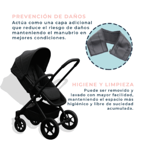 Cuida el manubrio del coche de tu bebé con esta funda acolchada, que entrega confort al manejar y mayor protección ante el desgaste y la suciedad.