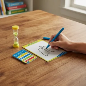 ✔️ Incluye tarjetas de pistas, bloc de dibujo y lápices