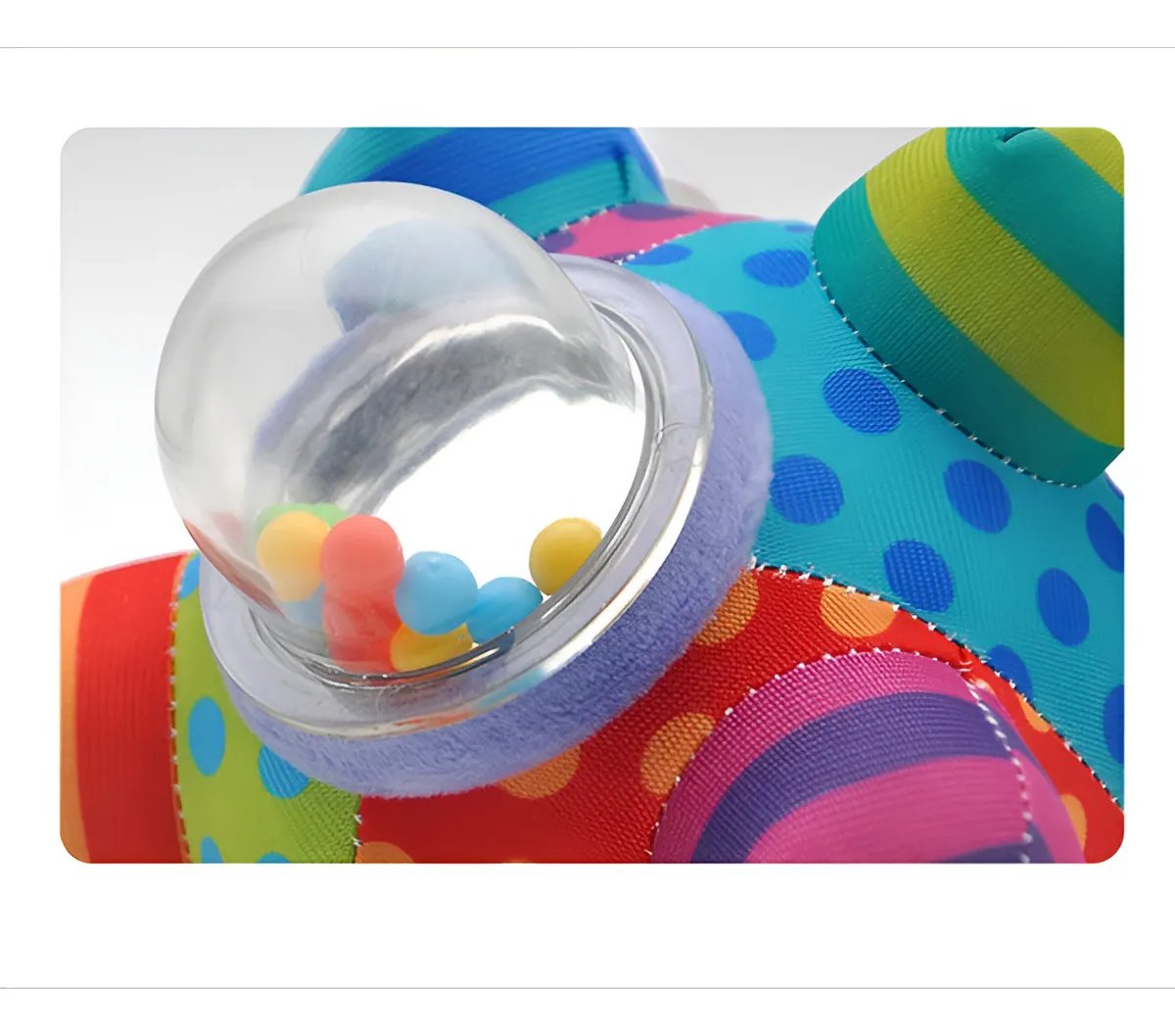 – Colorida pelota o esfera sonajero diseñada especialmente para la estimulación temprana en los bebes.