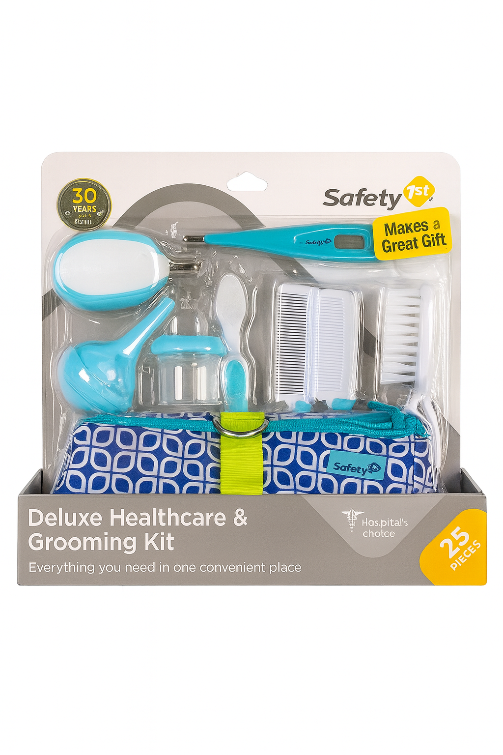 Mantén a tu bebé siempre cuidado y protegido con el Kit Deluxe de Cuidado y Aseo Safety 1st, un set completo con todo lo necesario para la salud e higiene diaria en un solo lugar. Ideal para uso en casa o para llevar de viaje gracias a su práctica bolsa organizadora.