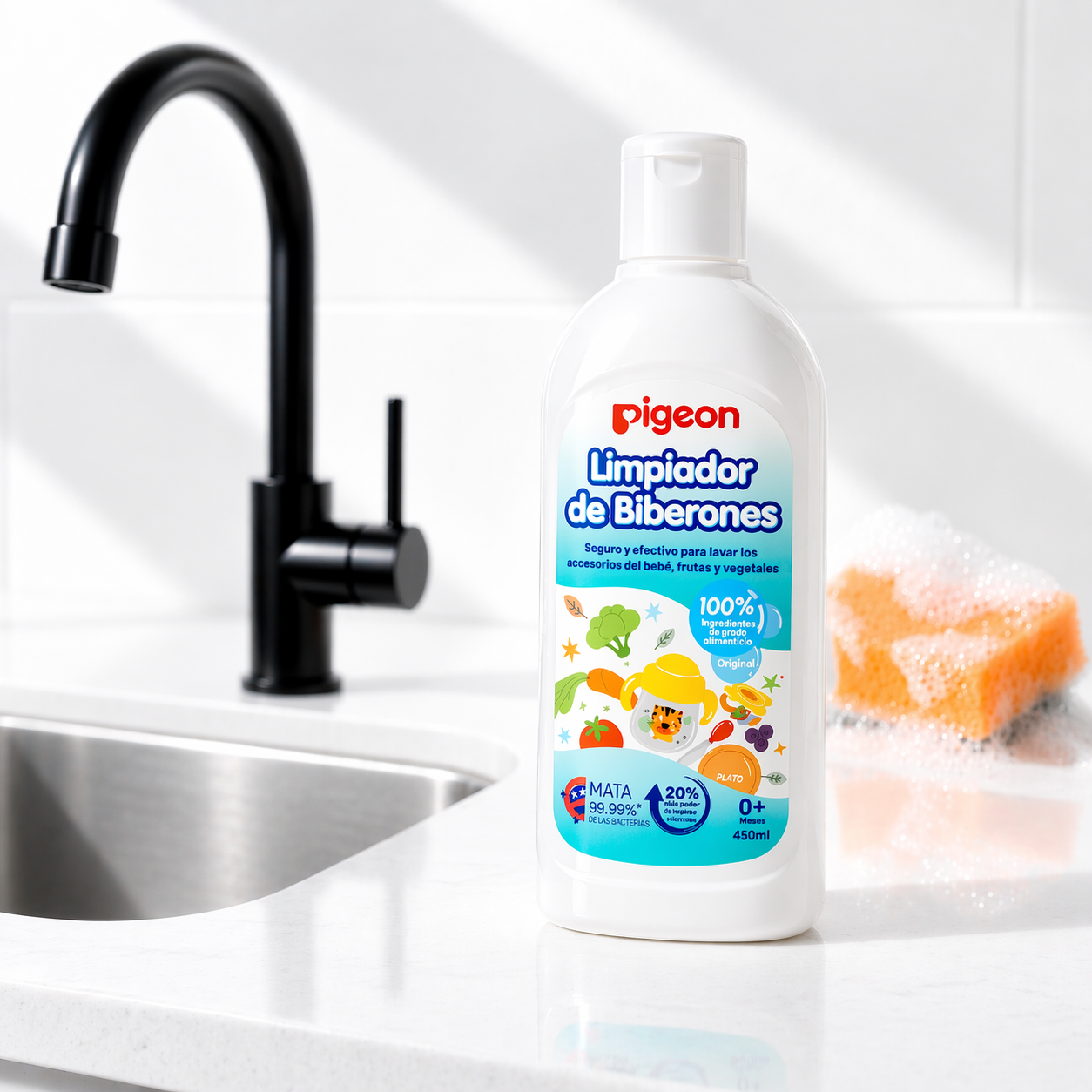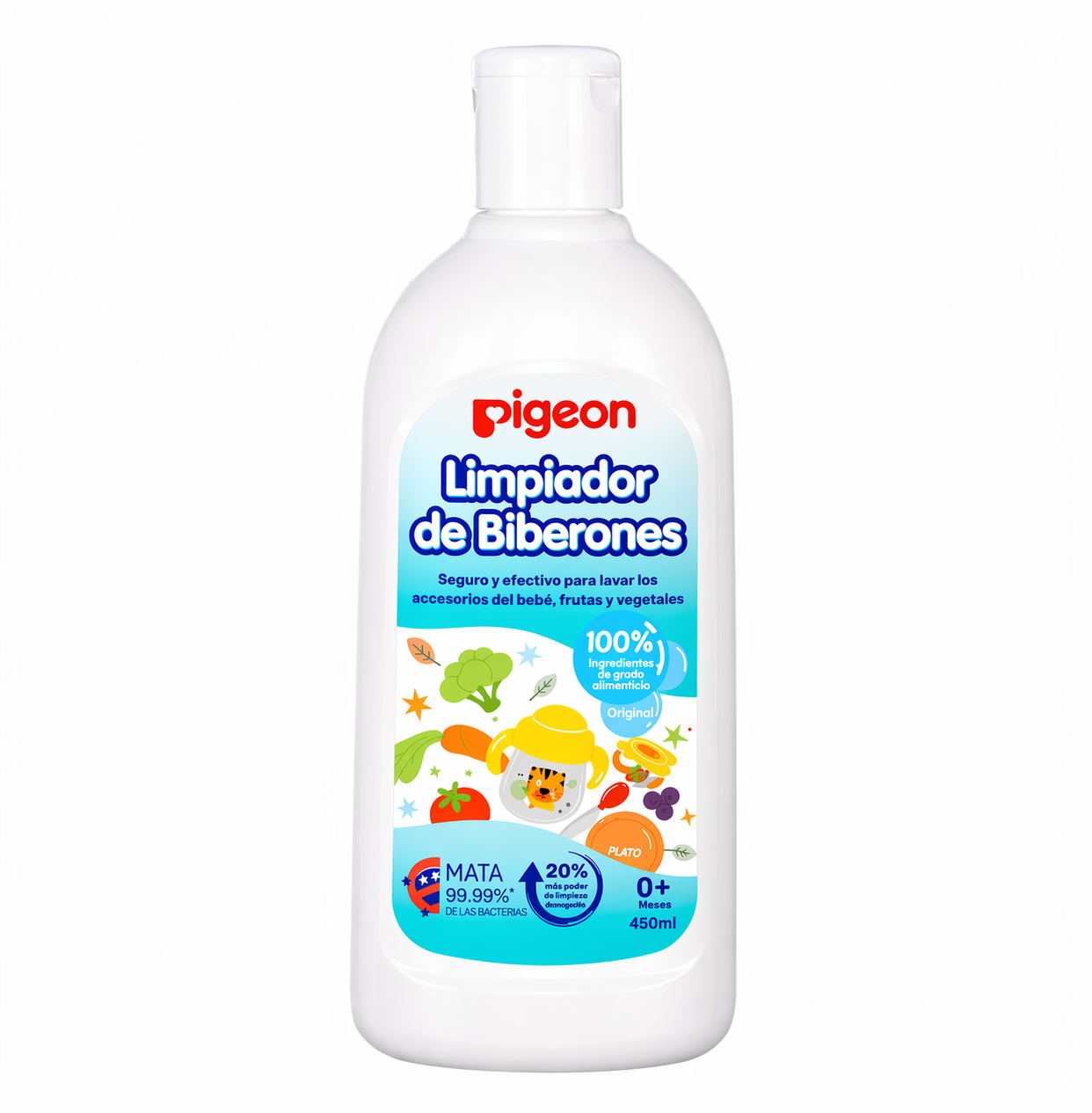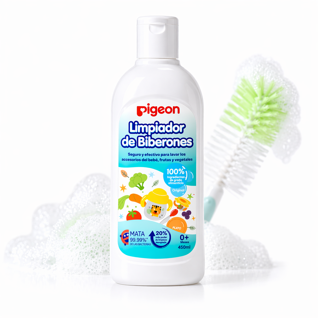 El Limpiador de Biberones Pigeon es un producto especialmente formulado para lavar los accesorios del bebé, frutas y verduras de manera segura y eficaz. Su fórmula elimina el 99.9% de las bacterias, garantizando una higiene óptima para la salud de tu hijo.