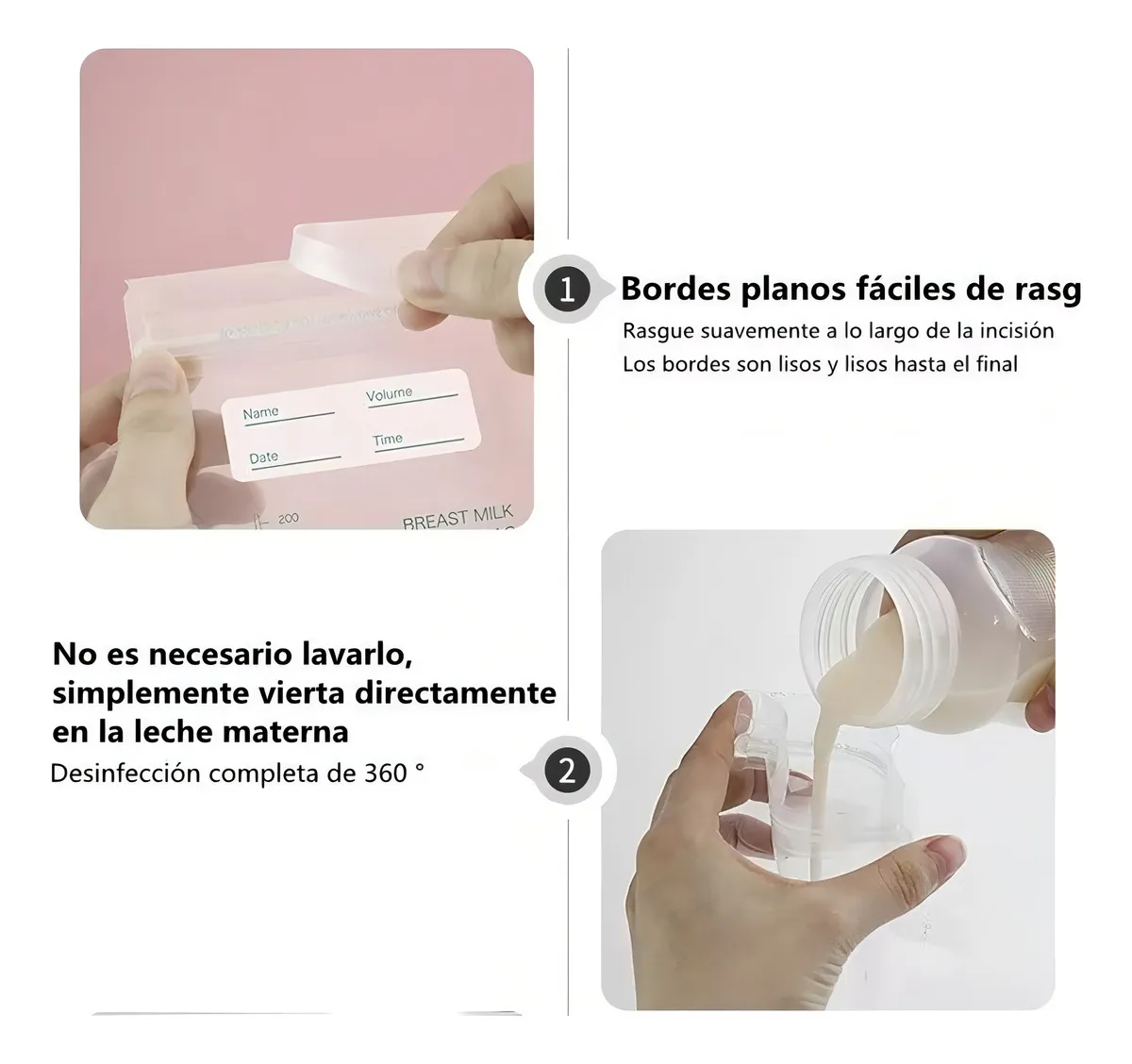 Estas bolsas son ideales para madres que buscan una forma práctica y segura de almacenar leche materna, ya sea en casa, en el trabajo o durante viajes.