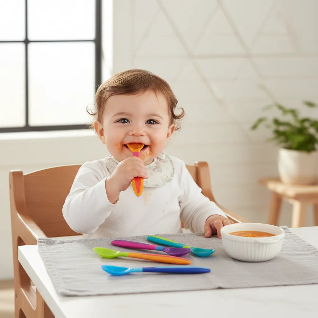 • Ayuda al bebé a aprender a usar cubiertos de forma progresiva