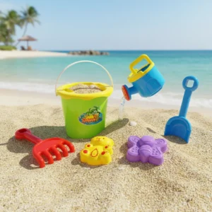 Ideal para la diversión de los niños en la playa, este set incluye todo lo necesario para crear castillos y figuras en la arena.
