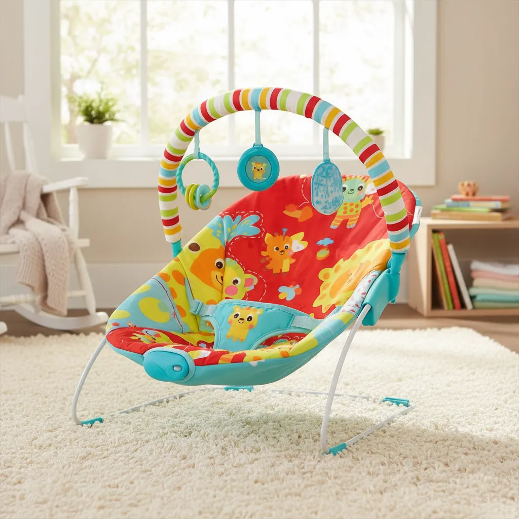 La silla nido mecedora Safari es el complemento ideal para acompañar los momentos de descanso y juego de tu bebé. Su diseño cómodo y seguro permite que el pequeño se relaje mientras disfruta de un suave balanceo natural, ideal para usar en casa todos los días.