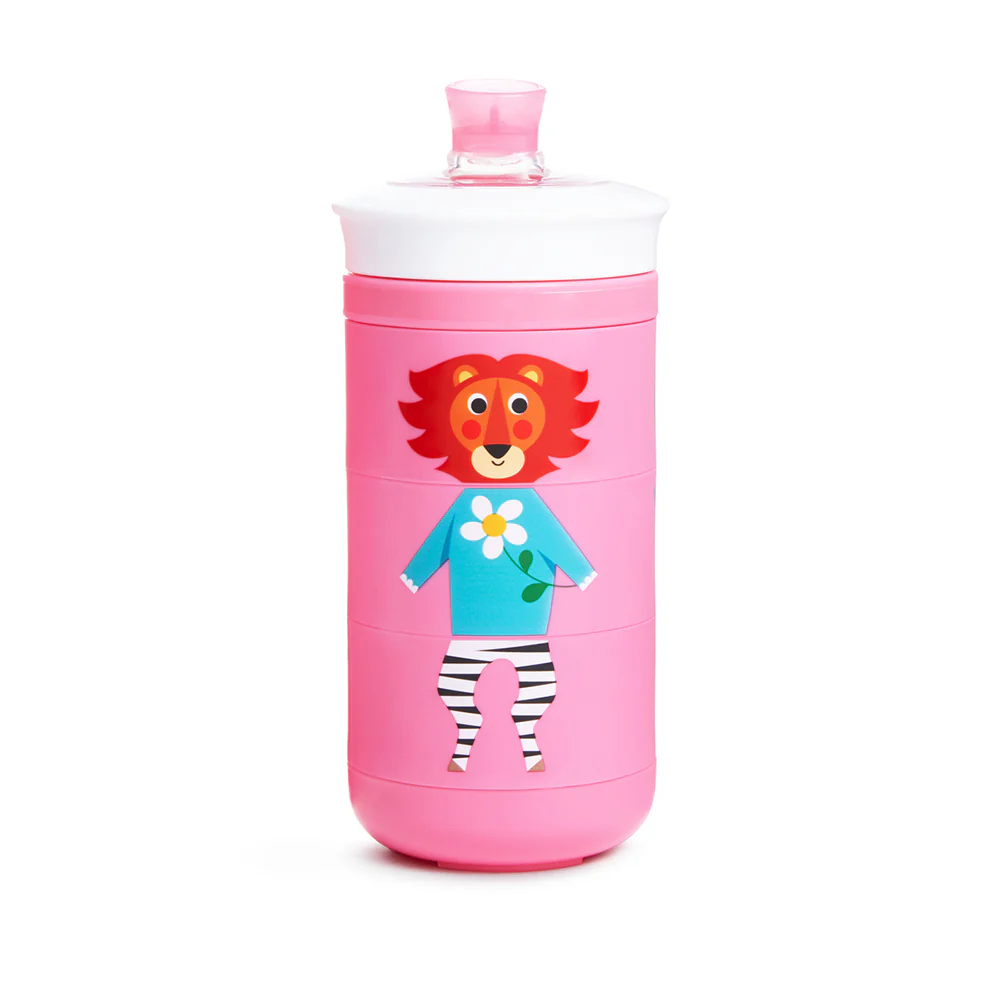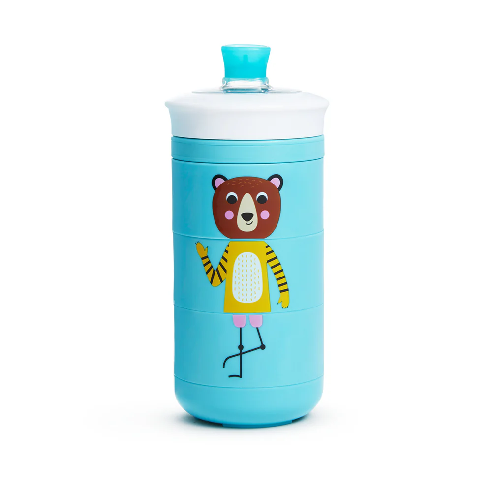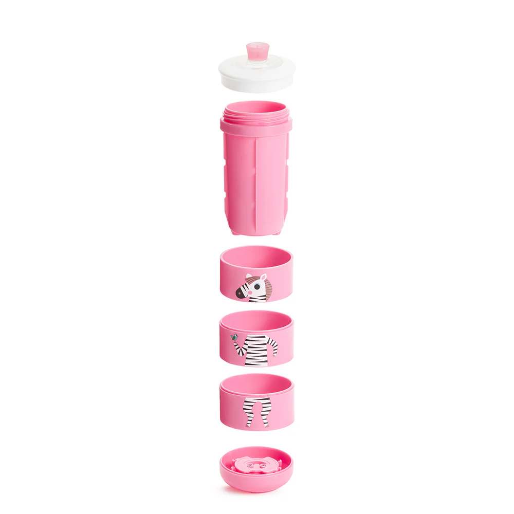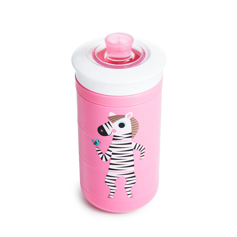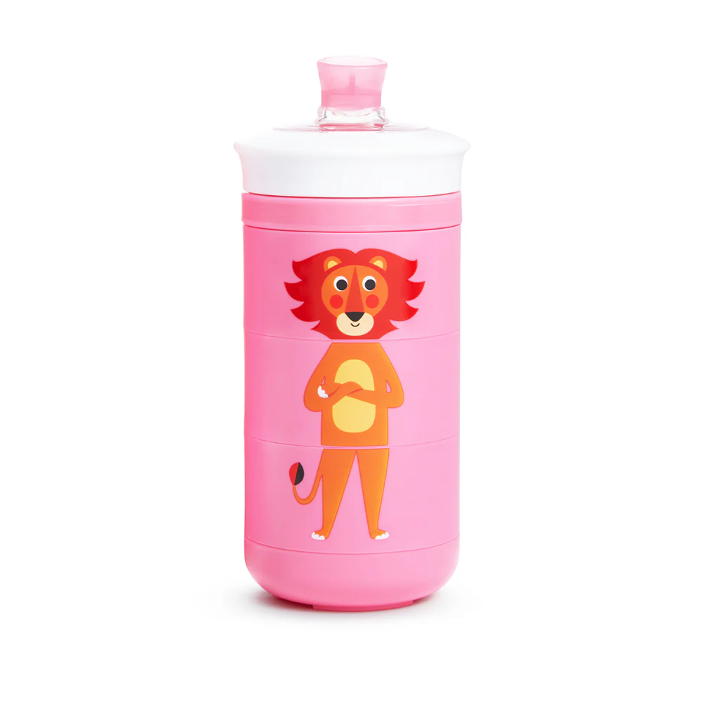 Vaso Twisty para niños con tapa giratoria y sistema antiderrames. Diseñado para facilitar el agarre por manos pequeñas, con boquilla de silicona suave y libre de BPA. Ideal para fomentar la autonomía en la hidratación diaria.